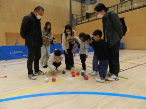 では、カローリング、ボッチャ、お鍋ふた卓球、CCリング等 4種類のスポーツを体験していただきました。